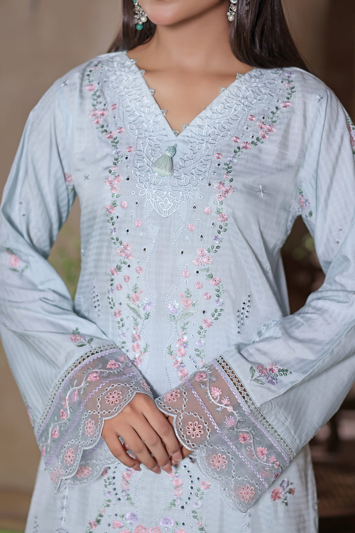 - Shirt: Semi-stitched luxury Chicken-Kari Dora viscose shirt with intricate embroidered detailing