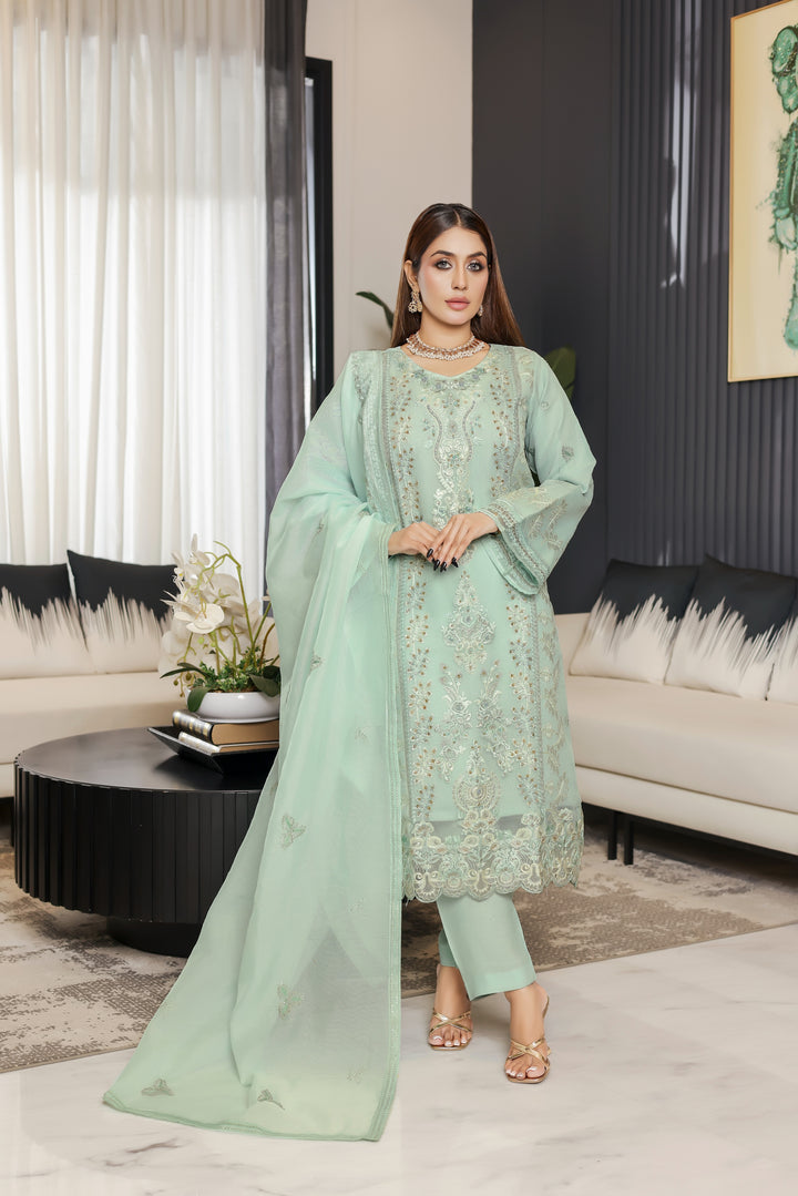 - Semi-stitched 3-piece luxury embroidered Aiyudiya Net & organza outfit