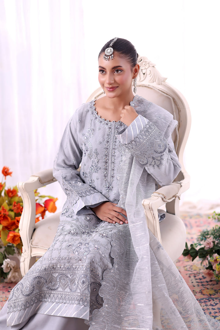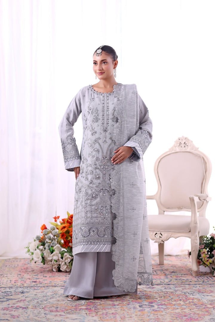 - Unstitched 3-piece luxury embroidered Aiyudiya Net outfit
