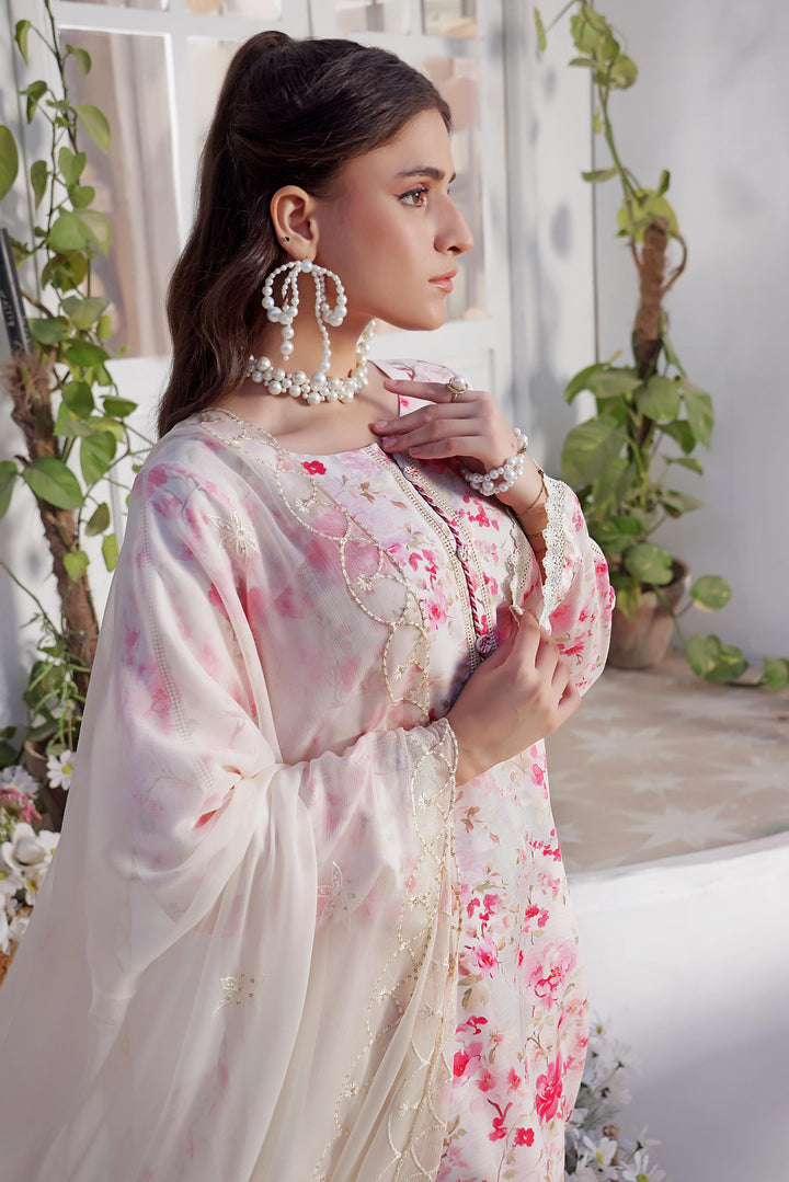 Each 3-piece set includes a luxury embroidered Laser-Kari Dora PP Staple shirt, a digital printed premium chiffon dupatta, and a printed PP Staple trouser, completing an ensemble that is as stylish as it is comfortable.