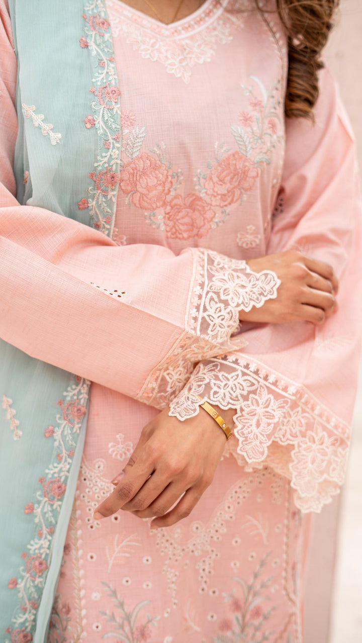 Sleeves: Premium Embroidered Chikan-kari Jacquard Lawn – Delicate embroidery on the sleeves, adding a touch of regal beauty.