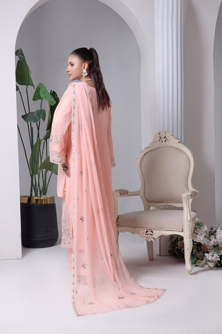 MALAIKA - Semi-Stitched Embroidered Chiffon (Peach Bloom)