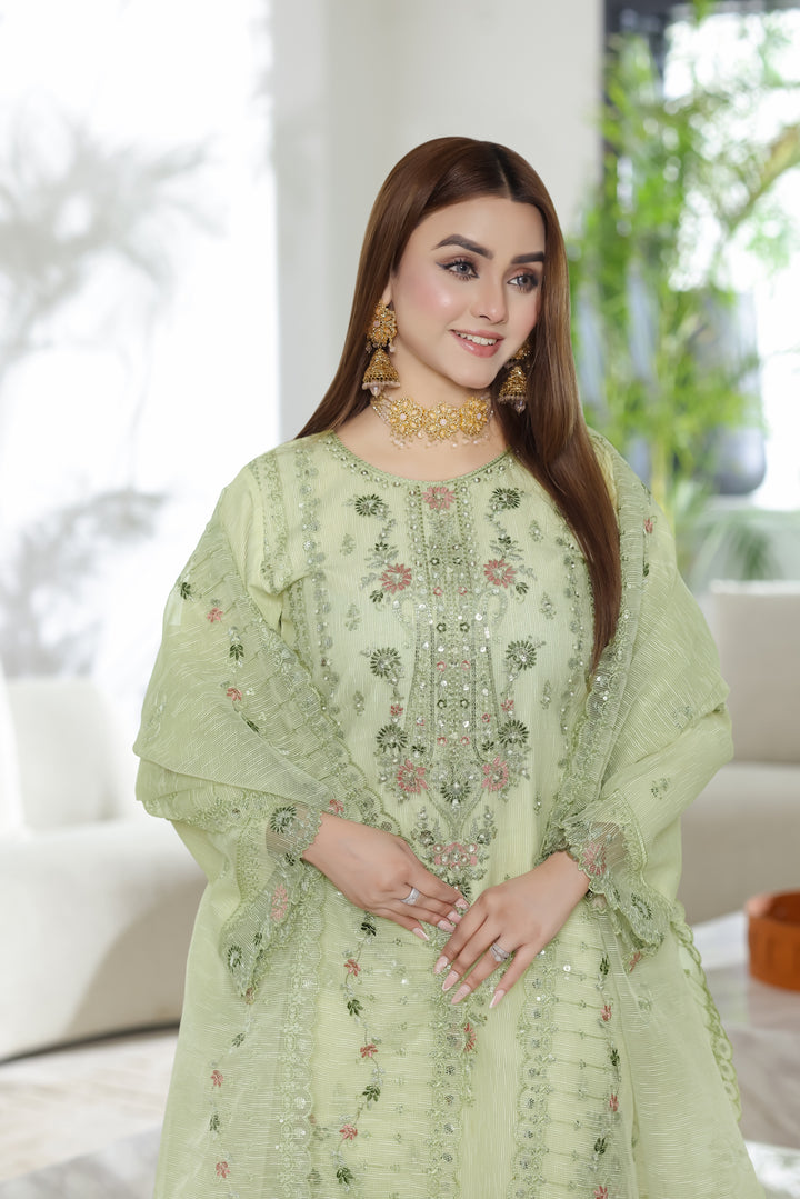 Semi-stitched 3-piece luxury embroidered Ayudhiya Net outfit