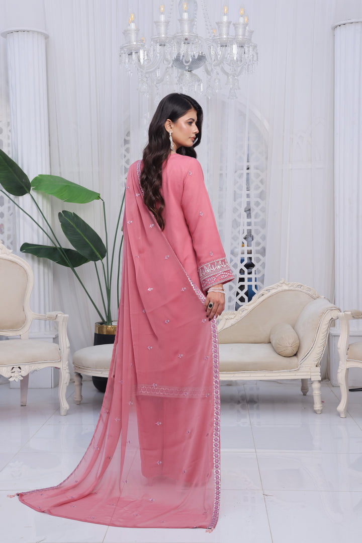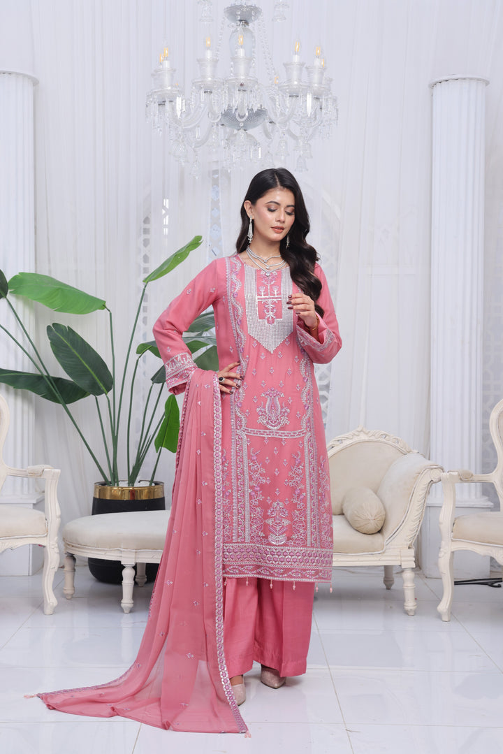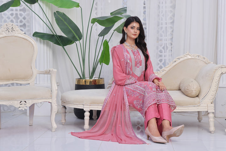 – a sophisticated semi-stitched 3-piece luxury embroidered chiffon ensemble designed for timeless elegance and grace.