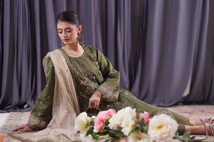 Each ensemble reflects timeless refinement through premium organza lining, balanced textures, and graceful embroidery. From the soft drape of the khaddi net dupatta to the polished finish of the raw silk trouser, every piece in ORCHID tells a story of elegance, femininity, and effortless beauty.