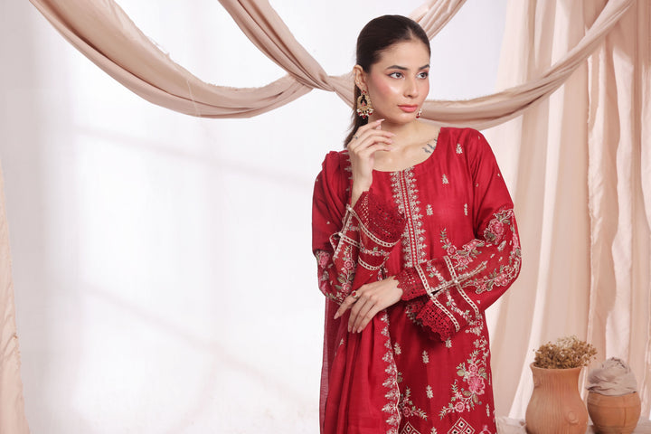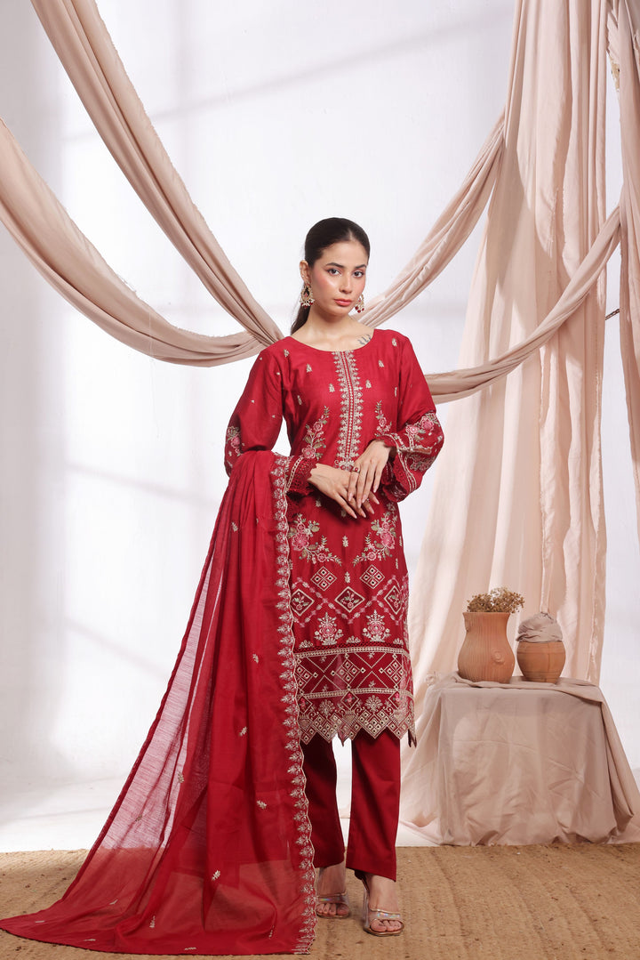 Elegance experience timeless grace with our Stitched Embroidered Jacquard Lawn Suit, blending modern design with traditional charm.