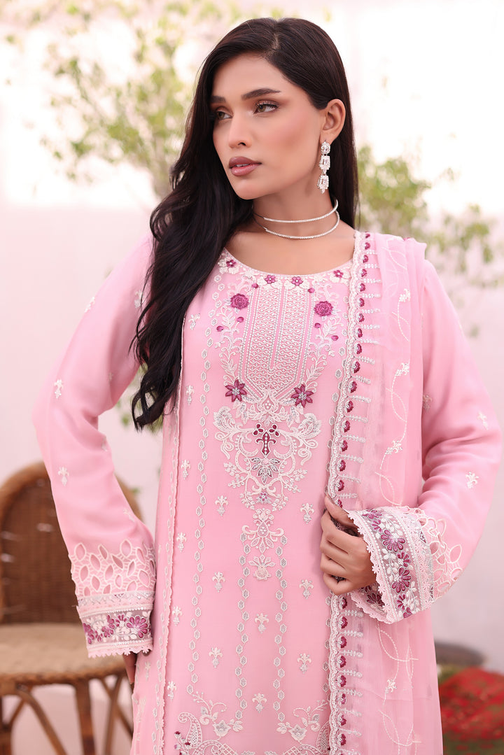 Each 3-piece set includes a ready-to-wear luxury embroidered chiffon shirt, an exquisite embroidered chiffon dupatta, and a dyed viscose trouser tailored for comfort and refinement.