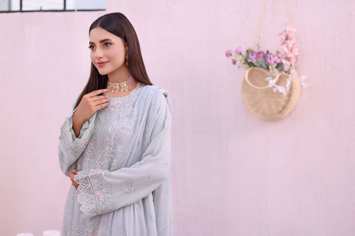 Each 3-piece set includes a ready-to-wear luxury embroidered chiffon shirt, an exquisite embroidered chiffon dupatta, and a dyed viscose trouser tailored for comfort and refinement.