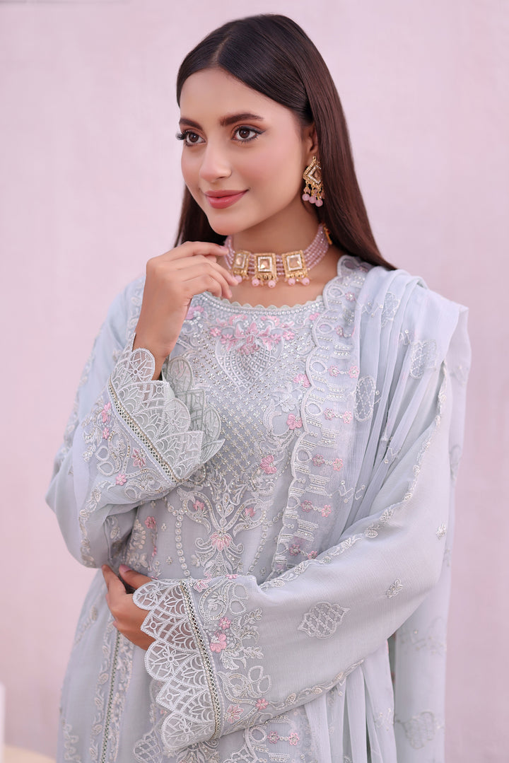 - Stitched 3-piece luxury embroidered chiffon outfit