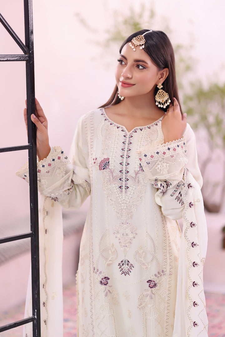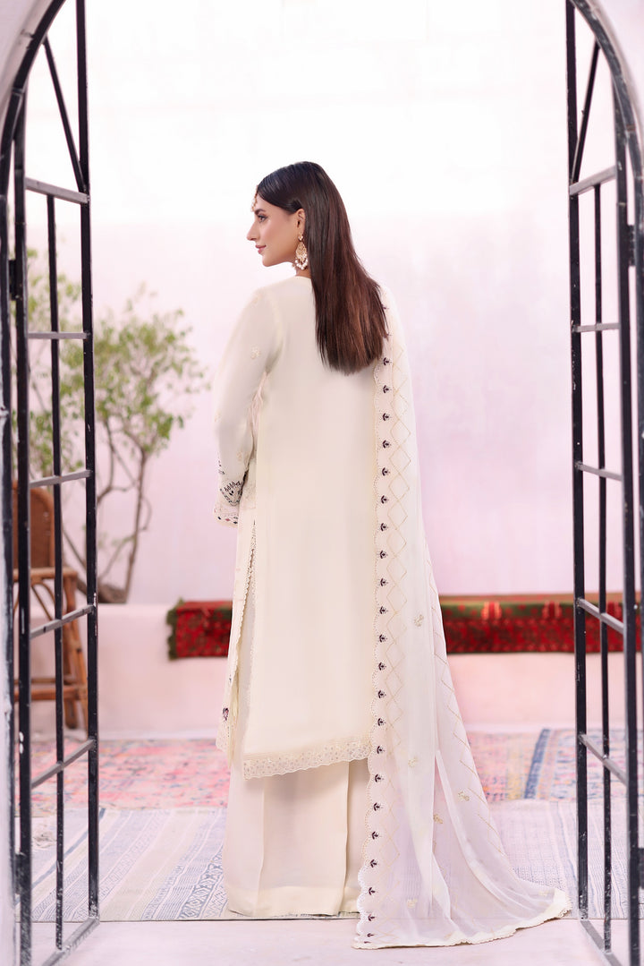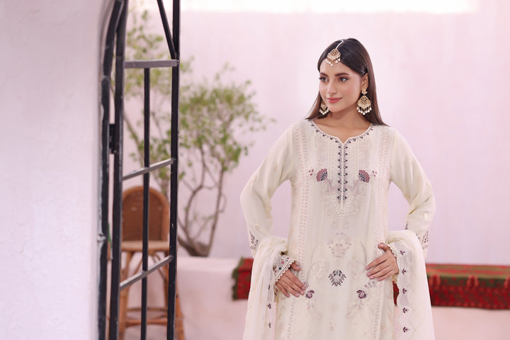 Each 3-piece set includes a ready-to-wear luxury embroidered chiffon shirt, an exquisite embroidered chiffon dupatta, and a dyed viscose trouser tailored for comfort and refinement.