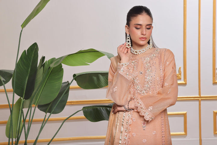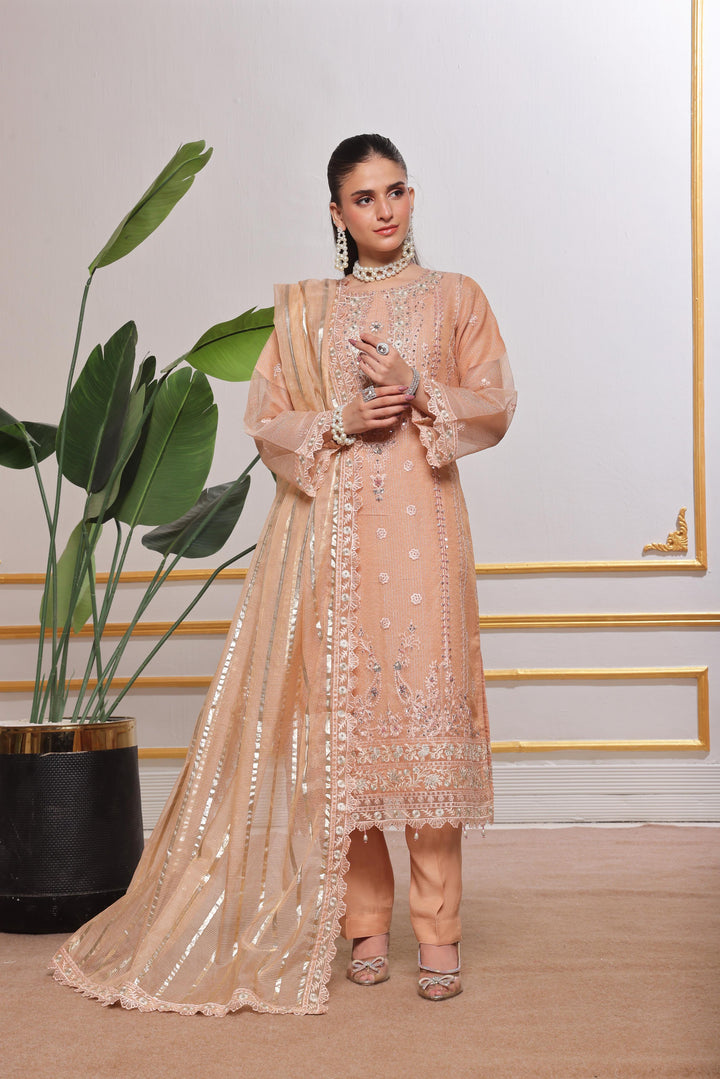 RED-ROSE – A Statement of Elegance | Semi-Stitched Zari Aiyudiya Net Collection with Staple Lorex Dhari Dupatta & Raw Silk Grip Trousers