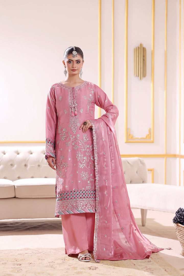 - Unstitched 3-piece premium Shesha Silk outfit