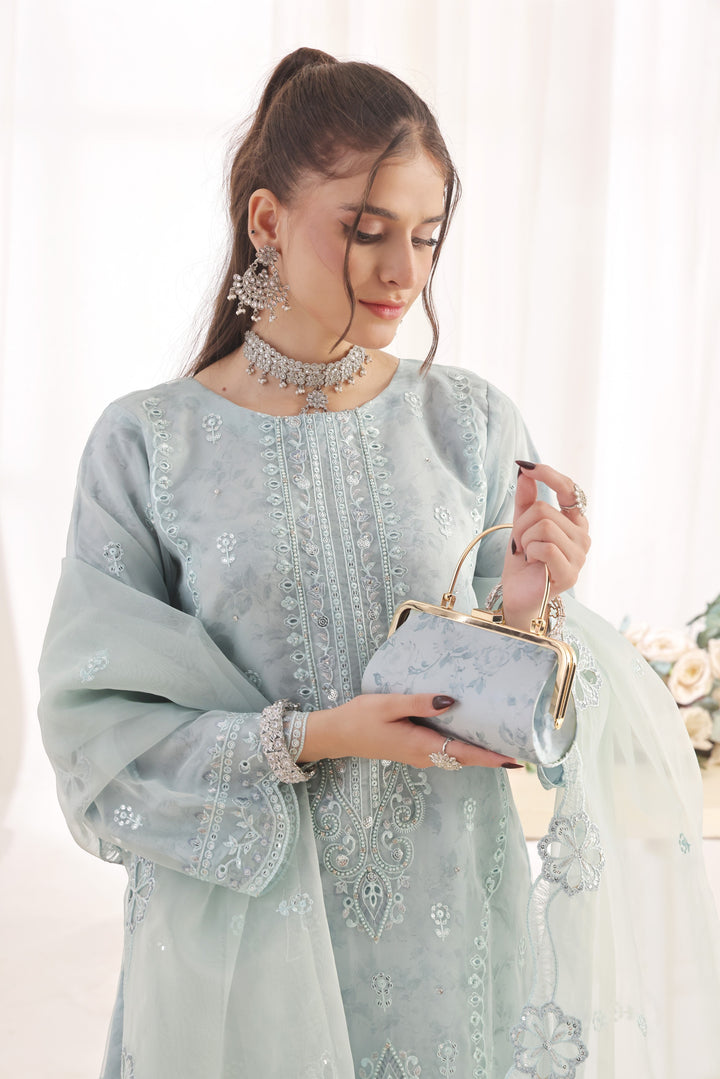 XENIA - Luxury Embroidered Organza Clutches Collection (3-Piece – Semi-Stitched)