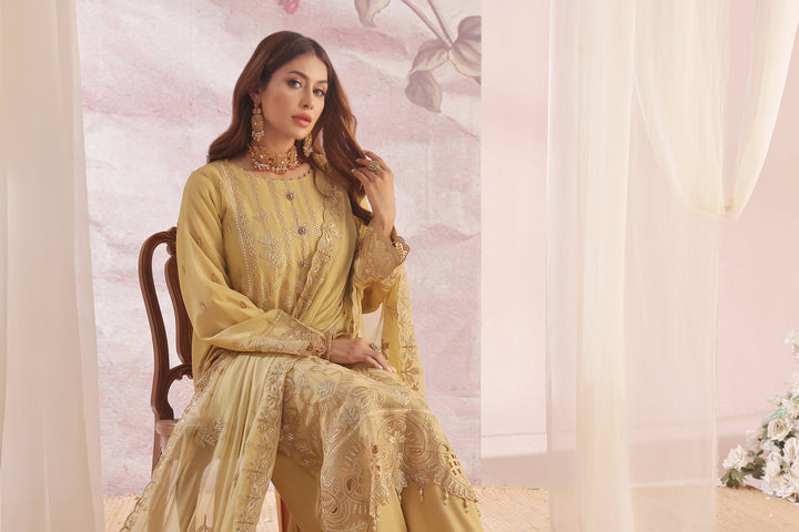 Step into timeless elegance with ZARISH, a semi-stitched luxury chiffon collection designed for those who appreciate fine embroidery and sophisticated aesthetics. Crafted with exquisite sequence and boring work, each ensemble reflects a delicate harmony of tradition and grace - perfect for festive soirées, formal gatherings, and elegant evenings.