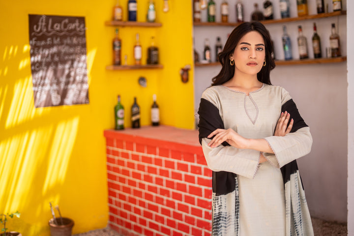 Shirt: Made from luxuriously soft Bindhi Broshia Lawn, this shirt features a delicate texture with graceful, artistic patterns that exude sophistication.